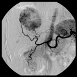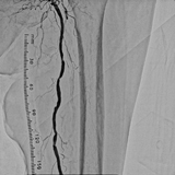 血管造影とは患者様の動脈や静脈にカテーテルと呼ばれる管を挿入し、そこから、X線画像に写る性質を持つ造影剤という薬剤を注入して、血管やその血管から栄養される様々な臓器の画像を撮影する手技のことです。撮影した画像で、血管の狭いところや瘤(こぶ)のように膨れたところ、腫瘍などの病気が確認された場合は、狭いところを広げたり瘤(こぶ)に詰め物をしたり、腫瘍に抗がん剤を注入したりといった治療をその場で行うことが出来ます。治療はカテーテルと同じところから様々な細い器具を血管内に挿入して行います。つまり、病気の撮影から治療までをひとつの流れのなかで行うことが出来るのがこの部門の特徴と言えます。