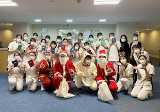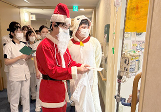 今年はキャンドルサービスに参加する学生を近隣の学校からも募り、当日は60名の看護学生がボランティアとして参加しました。学生が各病棟でキャンドルを灯し、クリスマスソングを歌いながら病室を訪れると、患者様の笑顔があふれ病棟は和やかな雰囲気に包まれました。