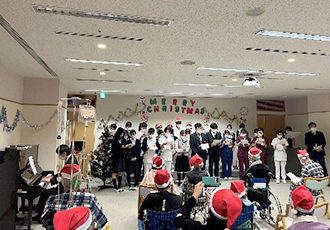 コンサートは、小田原キャンパスの軽音楽部の演奏と歌、佐藤名誉病院長と事務職員がピアノ演奏を披露しました。最後に、会場内にいる職員と患者様全員で「We Wish You a Merry Christmas」と「ふるさと」を歌い、寒さの厳しい一日でしたが、心温まるひとときを過ごしました。