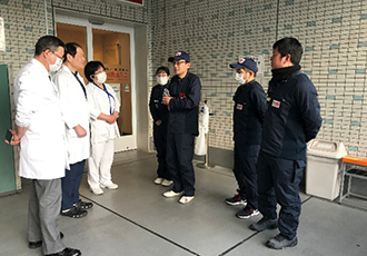 1月12日(金)、石川県七尾市の能登総合病院内に設置されている能登医療圏活動拠点本部に到着。