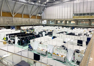 派遣先は金沢市のいしかわ総合スポーツセンター内にある「一時待機ステーション」でした。避難生活に伴う体調の悪化を防ぐために開設されている「1.5次避難所」で、今回は静岡県内の他病院との混成チームで活動を行いました。